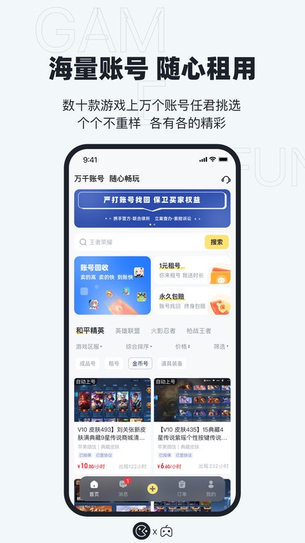 账号租赁:用户可在App内浏览大量可租账号,涵盖游戏、影音、社交等多类型。通过简洁直观的操作界面,几步即可完成租赁流程,快速获得账号使用权。